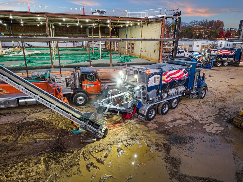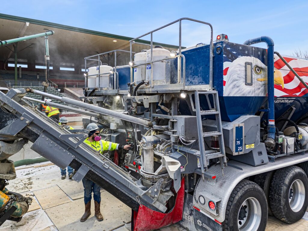 In contrast, traditional ready-mix concrete is produced in one place, a concrete plant. From there, the concrete is loaded into a drum truck where it is transferred to the job site. Because ready-mix begins to set once loaded, its workable lifespan is limited, meaning any project delays can lead to waste or compromised quality. With on-site volumetric mixing, concrete is produced fresh as needed, maximizing efficiency and minimizing waste.